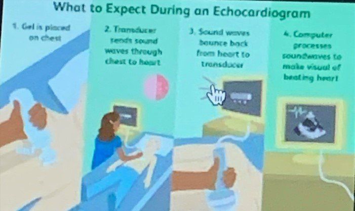 Images will appear on the screen that will show the technician the structure of your heart valves along with the strength that your heart Is pumping. This test runs for 15-20 minutes.